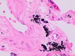 - ^ Sagoh T, Itoh K, Togashi K, Shibata T, Nishimura K, Minami S, Asato R, Noma S, Fujisawa I, Yamashita K (1989). "Gamna-Gandy bodies of the spleen: evaluation with MR imaging". Radiology. 172 (3): 685–7. doi:10.1148/radiology.172.3.2672093. PMID 2672093.