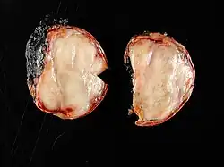 Pathologically, ganglioneuromas are composed of ganglion cells, Schwann cells and fibrous tissue.[6] Ganglioneuromas are solid, firm tumours that typically are white when seen with the naked eye.