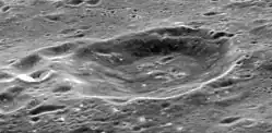 Oblique view of 8 Homeward crater (formerly Ganskiy M) from Apollo 17 panoramic camera