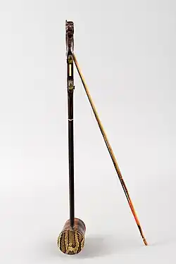 ![]() Gaohu, traditional Guangdong type, with dragon head, round body, no base, and played with the body held between the knees | |