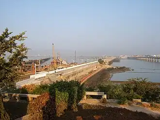 Gaoji Causeway (Chinese: 高集海堤; pinyin: Gāojí Hǎidī) is a 2,212-meter-long causeway in Xiamen, Fujian, China. It links Gaoqi in downtown Xiamen Island across the Xiamen Bay to Jimei District on the mainland. It used to serve as a road and rail link, as well as water piping into Xiamen Island. In order to improve the water quality around Xiamen Island, part of the causeway was blasted off and removed, replaced by bridge, and it would serve only as road link.[1] Completed in 1955, along with Wuhan Yangtze River Bridge, the causeway is considered one of the major construction projects in the early years of the People's Republic of China. It remained Xiamen Island's sole link with the mainland until 1991. The Gaoji Causeway has a museum devoted to its construction and history founded in 2013.[2]
