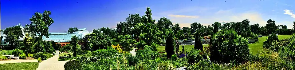 Garfield Park is a 184-acre (0.74 km2) urban park located in the East Garfield Park neighborhood on Chicago's West Side. It was designed as a pleasure ground by William LeBaron Jenney in the 1870s and is the oldest of the three original parks developed by the West Side parks commission on the Chicago park and boulevard plan (Humboldt Park, Garfield, and Douglass Park). It is home to the Garfield Park Conservatory, one of the largest plant conservatories in the United States. It is also the park furthest west in the Chicago park and boulevard system.[2]