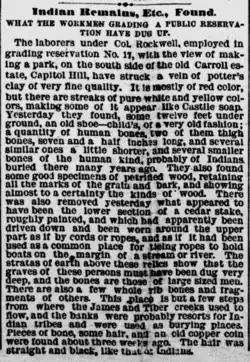- ^ "Indian Remains, Etc., Found. What the Workmen Grading a Public Reservation Have Dug Up". Evening Star. Washington, D.C. August 22, 1883. Retrieved August 8, 2024.