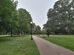 Duddington Manor, built by one of the city's original landowners, Daniel Carroll of Duddington, was razed in 1886 to be replaced by row houses.[3] In 1886, the roadway entrance to the park on Second Street and F Street was paved with cobblestone; the surrounding sidewalks were paved with brick.[2]
