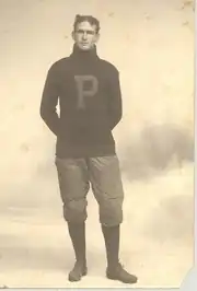 Garfield Weede played football at Cooper Memorial College—now known as Sterling College—as a quarterback from 1898 to 1900.[2] He then played at the University of Pennsylvania as an end and placekicker. He was severely injured in a game in October 1905.[3] Under head coach Carl S. Williams, the team was undefeated in 1904 with a record of 12–0 and has since retroactively been declared "national champions" for that year.[4]