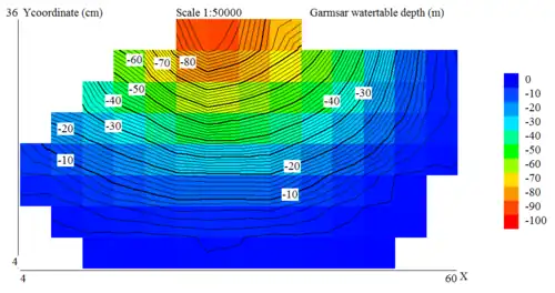 Simulation of soil salinity (left) and depth of the watertable (right) in the Garmsar alluvial fan using the spatial agro-hydro-salinity model SahysMod[10] |