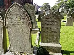 Garrick is also an anglicised spelling and pronunciation of the Scottish name Garrioch. This variation originated in the Aberdeenshire area Garioch. The placename Garioch comes from the Gaelic word Gairbheach, meaning "place of roughness". Examples of family members using Garrioch and Garrick can be seen on adjacent gravestones in St Magnus Cathedral, Kirkwall, Orkney.