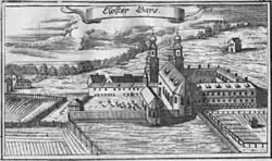 ![]() Copper engraving of the Monastery by Johann Ulrich Kraus from the "Churbaierische Atlas" of Anton Wilhelm Ertl, 1687 | |
