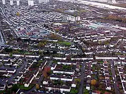 ![]() Aerial view of part of the ward, looking east (2017) | |