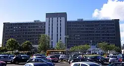 In April 1965, the Western Regional Hospital Board announced a major building programme and the following year a £1 million contract was awarded for a new district general hospital to be sited beside the existing Gartnavel Royal Hospital.[4] The hospital was designed by Keppie, Henderson & Partners in association with Thomas Astorga,[5][6] It was initially used to house units from the Western Infirmary that were relocating while the hospital buildings were being demolished and replaced.[7] The hospital was officially opened by Princess Alexandra in October 1973.[5]
