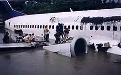 ![]() The aircraft after ditching into the Bengawan Solo River | |