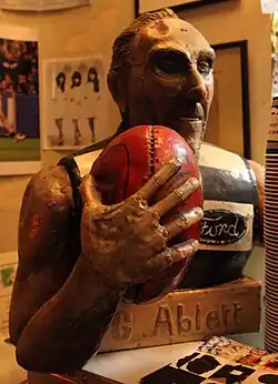 ![]() Sculpture of Ablett by artist Stu James at an exhibition of football art | |||