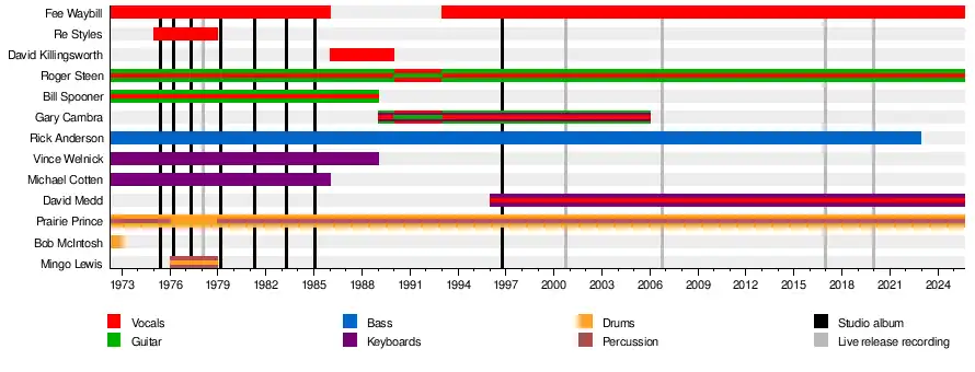 - Fee Waybill – lead vocals, occasional guitar (1972–1986, 1993–present)