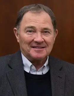 Herbert was appointed to a seat on the Utah County Commission in 1990, where he served 14 years. He ran for the Republican nomination for governor in 2004, ultimately becoming fellow Republican candidate Jon Huntsman's running mate in the general election. Herbert served as the sixth lieutenant governor of Utah from 2005 until August 11, 2009, when he assumed the governorship following the resignation of Huntsman, who was appointed to serve as the United States Ambassador to China by President Barack Obama. Herbert was elected to serve out the remainder of the term in a special gubernatorial election in 2010, defeating Democratic nominee Salt Lake County Mayor Peter Corroon with 64% of the vote. He won election to a full four-year term in 2012, defeating Democratic Businessman Peter Cooke with 68% of the vote and was re-elected to a second full four-year term in 2016. Herbert announced in 2019 that he would not seek re-election to a third full term in 2020; he endorsed the gubernatorial candidacy of his Lieutenant Governor, Spencer Cox.[1]