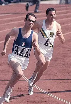 ![]() Gary Holdsworth (right) competing against Livio Berruti in the 200 m at the 1964 Olympics | |||||||||||||||