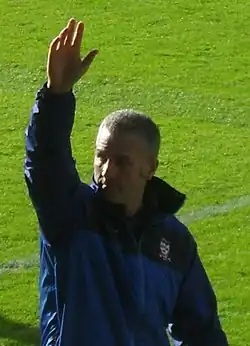 Mills made eight appearances for Boston before being appointed the player-manager of Southern League Premier Division club Tamworth on 12 January 2001.[74][75][76] He was not in charge for the following day's 3–0 home defeat to Boston in the FA Trophy, with Tim Steele continuing as caretaker manager for this match.[77][78][79] His first match as manager was a 2–2 home draw with Havant & Waterlooville on 20 January 2001, in which he played and scored.[77][80] Tamworth finished the season in 12th place in the Southern League Premier Division,[81] and Mills made 16 appearances and scored 2 goals.[78] Tamworth missed out on promotion to the Football Conference on the final day of 2001–02, finishing second in the Southern League Premier Division, two points behind the title winners Kettering Town.[82][83] He played often for Tamworth this season, making 30 appearances.[84]