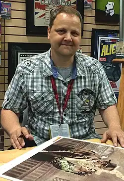 ![]() Gary Shipman signs his Indiana Jones artwork at San Diego Comic-Con in 2014. | |