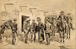 Benavides was one of the first prisoners taken by the Americans during the second campaign. On January 21, 1893, a squad from the 3rd Cavalry, under Lieutenant J. T. Dickman, arrested Benavides and another leader named Prudencio Gonzales without a fight on the Mexican side of the border. A day later, Lieutenant Dickman came across Cecilio Eschevarria who put up a "sharp fight" but was ultimately captured. On the same day, a rebel named Maximo Martinez, who participated in the San Ygnacio raid, surrendered to a local sheriff. The final engagement of the war to involve the Americans occurred on February 23 in Starr County. According to General Wheaton, Lieutenant P. G. Lowe, 18th Infantry, was out scouting with a former sheriff named Washington Shely and two Black Seminoles when they came across Las Muias Ranch, held by "the most desperate of all the bandits", Eusabio Martinez, alias Mangas de Agua. Another skirmish ensued and ended with Martinez dead. By March 1893, the war was basically over. Captain Henry Jackson, 7th Cavalry, wrote; "The idea of any Revolution against Mexico is gone, but there are some 50 or 60 still out who are implicated in the San Ignacio raid, without money or food and who, on account of this extradition business, and in some cases civil processes, are afraid to surrender; these men are in the brush, roaming from place to place, stopping no 2 days at any one and will simply have to be hunted down. This can be done better I think by a few Seminoles and the Shelys with his deputies than any other way.... Since my last letter Rafael Nielo and Esperantis Ortiz have surrendered here and others are expected today."[4][6]