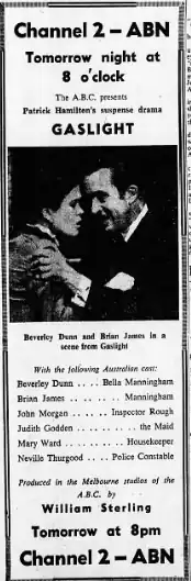 - ^ "Gaslight on TV with Melbourne Cast". The Age. 2 January 1958. p. 8.