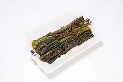 Gat-kimchi (Korean: 갓김치) is a regional variety of the Korean side dish kimchi, and is made from mustard greens instead of the more typical napa cabbage.[1][2]