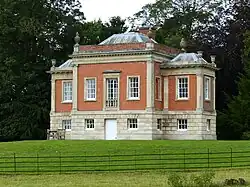 Gate Burton Hall was built around 1770–84, for the Hutton family, with later additions and alterations. It is now two residences, and is Grade II* listed.[3] In the grounds of Gate Burton Hall the temple folly in red brick and limestone, known as Burton Chateau, was built earlier in 1747 by James Paine, and it too is Grade II* listed.[4] It is a Landmark Trust property that is available for holiday lets.