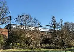 During the 2010s, the railway lines crossing the bridge were electrified, requiring the installation of 25 kV 50 Hz AC OHLE across the structure. Members of the public voiced concerns over the aesthetic impact of such modifications to the structure; [3] for its part, Network Rail commissioned studies into minimising the visual impact of the electrification effort.[4]