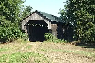 The Gates Farm Covered Bridge is a covered bridge that crosses the Seymour River off State Route 15 in Cambridge, Vermont. Built in 1897, it is last bridge to be built during the historic period of covered bridge construction with the Burr arch design. It was listed on the National Register of Historic Places in 1974.[1]