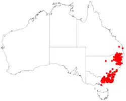 Slender tea-tree grows in woodland and shrubland, usually on rocky granite outcrops and near rocky streams. It occurs from the Granite Belt in south-eastern Queensland, mostly along the tablelands of New South Wales and the Australian Capital Territory to eastern Victoria.[2][3][4]