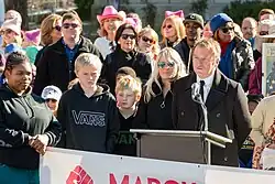Buckley was in office during the Capital Gazette shooting on 28 June 2018, in which five people were killed at a local newspaper's office. In the aftermath, Buckley requested a federal proclamation allowing flags to be flown at half-mast; he told the press on 2 July that the administration of President Donald Trump—who had repeatedly described press members as "enemies of the people"— had denied the request.[22] Trump's press secretary, Sarah Huckabee Sanders, called Buckley later that day; on the following day, the White House issued the requested proclamation, saying Trump had ordered it as soon as he learned of Buckley's petition.[23][24] In the wake of the shooting, Buckley called for stronger gun control, blaming the National Rifle Association of America for opposing legislation restricting gun sales to certain people with mental illnesses, such as the accused Capital Gazette shooter, and suggested looking into gun buyback programs such as those enacted in Australia.[1]