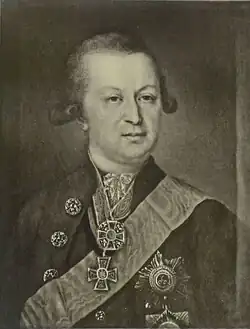 Prince Gavriil Petrovich Gagarin (January 20, 1745 – January 31, 1808 (1807[1]), Bogoslovskoye village, Dmitrovsky Uyezd, Moscow Governorate) was a Russian writer, senator and minister of the Gagarin family. Active Privy Councillor (1800), under Paul I – member of the Imperial Council, under Alexander I – Minister of Commerce. One of the largest figures of the Masonic movement in Russia.[2]