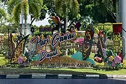 The Gawai Dayak term comes from Gawai meaning "festival" or "ritual" and Dayak a collective name for the indigenous peoples of Sarawak, Indonesian Kalimantan and the interior of Borneo.[notes 1][8][20][21] In the Iban language, the festival is called Ari Gawai, while the Bidayuh refers to it as Andu Gawai.[22] During the Gawai Dayak, roadside billboard or banner greetings such as "Gayu Guru Gerai Nyamai, Lantang Senang Nguan Menoa" or simply "Gayu Guru Gerai Nyamai" (Iban) which are translated to "Wishing you longevity, wellness, and prosperity", are commonly found around Sarawak during the festive season.[23]