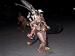 Bidayuh Dayak dances include the tolak bala (danger repealing),[93] a dance performed before the harvest to ask for blessing and protection of the community; the totokng dance that is performed during the harvest festival to welcome the paddy soul and guests; the langi julang which is performed at the closing of the harvest festival to thank gods for bestowing good health and a rich harvest;[96] and the eagle-warrior fight dance performed after the harvest season. Hands are held outstretched imitating the movements of the eagles as they flap their wings during their journey. The eagle eventually falls unconscious so leaving the warrior victorious which is performed especially by men seeking for a female partner.[97]