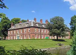 The house was begun by Lord Mohun in 1707 but abandoned after he was killed in a duel with the Duke of Hamilton in 1712.[2] Later additions and alterations were made including those to the designs of Sir Hubert Worthington in 1914. Late-19th-century residents of the house included William Taylor Birchenough,[3] a Macclesfield silk manufacturer and partner in the Macclesfield firm John Birchenough & Son, who was the brother of Sir Henry Birchenough. W. T. Birchenough lived in the house with his wife Jane Birchenough, daughter of Richard Peacock MP and their four children. His youngest son, also William Taylor Birchenough, was a pioneering aviator and test pilot. The house is built in red brick with a stone slate roof. It has two storeys and attic with an E-shaped plan. The garden front has 16 bays.[1] In the 1960s the hall was given over to Cheshire County Council and became a home for elderly women who were either physically, or mentally disabled. There was a large staff of carers, chefs, domestics and gardeners who looked after the residents and the grounds. In the 1980s it also took in elderly men too. A lot of the local people who lived in Gawsworth village worked at the hall. In the mid-1980s the hall was closed and put up for sale, and after being sold the hall was turned into apartments.