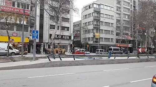 Gazi Bulvarı is a light-rail station on the Konak Tram of the Tram İzmir system in İzmir, Turkey. It is located on Gazi Boulevard (Turkish: Gazi Bulvarı), from which the station gets its name.[1] The station consists of an island platforms serving two tracks. Transfer is available to the İzmir Metro at Çankaya station.