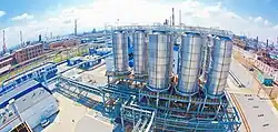 Gazprom Neftekhim Salavat (Russian: Газпром нéфтéхим Салават, IPA: [ɡɐsˈprom nʲɪftʲˈexim salavˈɑt]) is a Russian petrochemicals company headquartered in the city of Salavat in Bashkortostan. The company specializes in the processing of hydrocarbons into approximately 150 different petrochemicals, fertilizers and petroleum products, such as gasoline and fuel oil. As of 2024, the company controls three main plants in the city of Salavat, making it the largest petrochemical production complex in Russia. This includes an oil refinery and two additional plants that produce monomers and gas-based chemicals. In recent years, the complex has received criticism for its environmental record from Rosprirodnadzor,[2][3][4] and also for its safety record.[5] Until February 2011, the company was known as Salavatnefteorgsintez (Russian: Салаватнефтеоргсинтез, lit. 'Salvat Oil Organic Synthesis').[6]