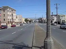 ![]() Geary Boulevard, looking eastbound at 36th Avenue, in a residential part of the Richmond District | |