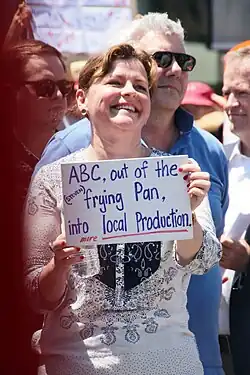![]() Kearney at a rally for refugee rights in 2022 | |