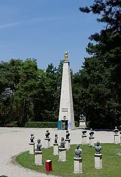 The Heldenberg Memorial is an open-air pantheon in the grounds of the castle at Kleinwetzdorf, Heldenberg, Lower Austria. It houses busts and statues of Austrian rulers and military personnel and was set up in 1849 by Joseph Gottfried Pargfrieder, a major supplier to the imperial army, who claimed to be an illegitimate son of Emperor Joseph II.