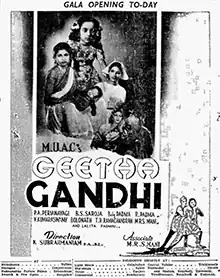 - ^ a b c d Geetha Gandhi (song book) (in Tamil). Madras United Artistes Corporation. 1949. Retrieved 14 August 2019 – via Internet Archive.