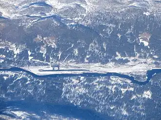 Twenty-six municipally owned airports were taken over by the Norwegian Civil Aviation Administration (now Avinor) on 1 January 1996. Geilo Airport was not among these, but received a NOK 1.5 million annual grant from the state.[8] Following Norway's entry into the Schengen Agreement in 2000, more money had to be invested in the airport to rebuild it to meet immigration requirements.[9] The airport set a new record with 8,870 passengers in 2002.[10] From 1 June 2003, a new company, Geilo Lufthavn Drift A/S, made an agreement to take over operations of the airport. But the airport was temporally closed from April to September, and the new company chose to not reopen the airport afterward.[11] The airport has since been turned into a go cart track, but private aircraft can use 850 by 20 meters (2,789 by 66 ft) of the runway.[12]