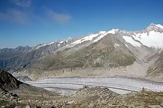 ![]() Geisshorn (center right) and Aletschhorn (right), above the Aletsch Glacier | |