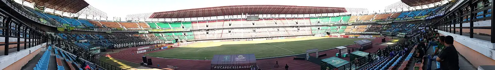 To accommodate the stadium facilities for the 2021 FIFA U-20 World Cup, renovations are being done to the stadium. Including the installation of the scoreboard in the north upper tribune, repainting and repairing the facade, and adding seats to the stadium to make it a suitable all-seater stadium. The seats are arranged in a mosaic based in a green color representing the home team colors of Persebaya.