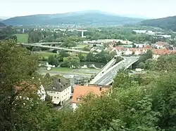 Owing to the town's strategically important location as a railway hub, two thirds of it was destroyed by Allied bombing raids and fighting towards the end of the Second World War. In the final days of the war, in April 1945, the railway junction (see also Gemünden station) was the subject of fierce fighting which lasted for six days.[3]: 29 [4]