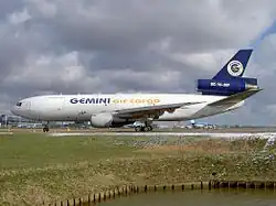 The airline was established in December 1995 by William Stockbridge, with financial backing from Lehman Brothers and Green Tree Capital. It began operations as an ACMI (Aircraft, Crews, Maintenance, Insurance) using DC-10-30F aircraft which were obtained from Lufthansa and converted to cargo configuration by Aeronavali in Venice. Prior to obtaining its own FAR Part 121 certificate, Gemini operated with crews from Sun Country Airlines under Sun Country's certificate for several months before certification in October 1996.