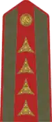| Generál | Plukovník | Podplukovník | Major | Štábní kapitán | Kapitán | Nadporučík | Poručík | Podporučík |