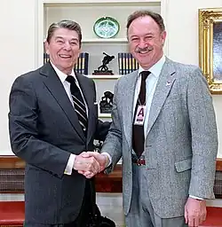 Hackman was a supporter of the Democratic Party and said he was "proud" to be included on Nixon's Enemies List. However, he spoke fondly about Republican president Ronald Reagan.[84]