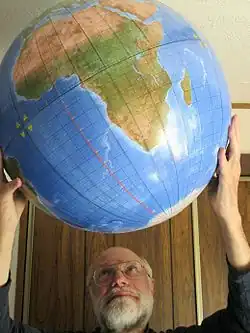 That 1975 map, the first Cahill-Keyes projection, launched a decades long quest to perfect it. One of his goals is a map with a 1:1 million scale, about half the size of a football field. Each one degree geocell would be large enough to stand in. While the physical Master Map as he calls it, remains a dream, in 2010, his partner Mary Jo Graça, using Keyes's extensive calculations, plotted the entire projection and in 2011 digitized the entire map. Absent the physical version, a 9,000 square foot pdf of that full size map can be easily navigated on a home computer.[21] It is the first contiguous world map at a resolution showing all one-degree geocells (except five degrees at the poles). Keyes likewise commissioned the first-ever one-degree globe from Joe Roubal in 2013.[21]