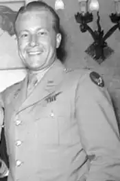 Following the beginning of World War II in Europe in 1939, Raymond felt certain the U.S. would eventually enter the war.[6] He trained as a pilot for that eventuality,[7] and after the attack on Pearl Harbor in 1941, he was commissioned a lieutenant in the Army Air Forces.[7] He served as an observer aboard B-17 anti-submarine flights along the Atlantic coast before attending intelligence school and shipping out to England in July 1942. He served with the 97th Bomb Group before taking over as assistant operations officer in the VIII Bomber Command.[7] He was transferred back to the U.S. in 1943 and piloted a variety of aircraft, both bombers and fighters, in stateside duties. He remained in the United States Air Force Reserve following the war, retiring in 1968 as a colonel,[7] awarded with a Legion of Merit for his efforts during the Vietnam War.[8]