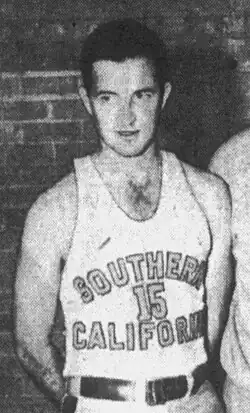 Eugene Rock (November 4, 1921 – October 31, 2002) was an American professional basketball player who played in the Professional Basketball League of America (PBLA) and the Basketball Association of America (BAA) during the 1947–48 season.[1][2] A native of Huntington Park, California, Rock attended Huntington Park High School before enrolling at the University of Southern California to play basketball.[1] While at USC, Rock earned varsity letters in 1942, 1943 and 1947.[3] Like many male college athletes during his day, Rock served in the military for two years before finishing college; he attained the rank of Captain in the Marine Corps.[3] Rock led the Trojans in scoring during 1942–43 (12.6 points per game) and again in 1946–47 (11.1 ppg).[3] During the former season, USC finished with a then-school record 23–5 mark en route to winning the Pacific Coast League Southern Division title.[3] Rock was also a teammate of future College Basketball Hall of Fame coaches Alex Hannum and Tex Winter.