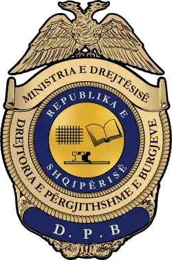 The General Directorate of Prisons (DPB; Albanian: Drejtoria e Përgjithshme e Burgjeve) is an institution in Albania under the umbrella of the Ministry of Justice. The main task of the directorate is the management of criminal institutions, as well as the creation of appropriate conditions for rigorous enforcement of all obligations arising from the existing legal framework, transforming the criminal sentences into re-education options.